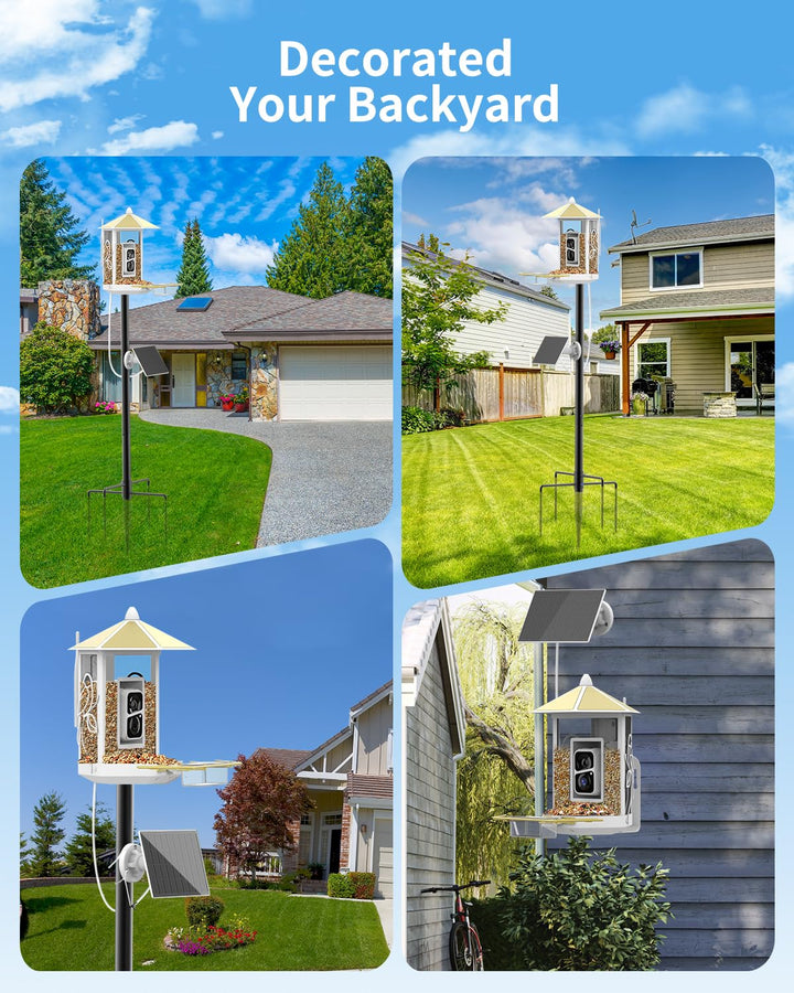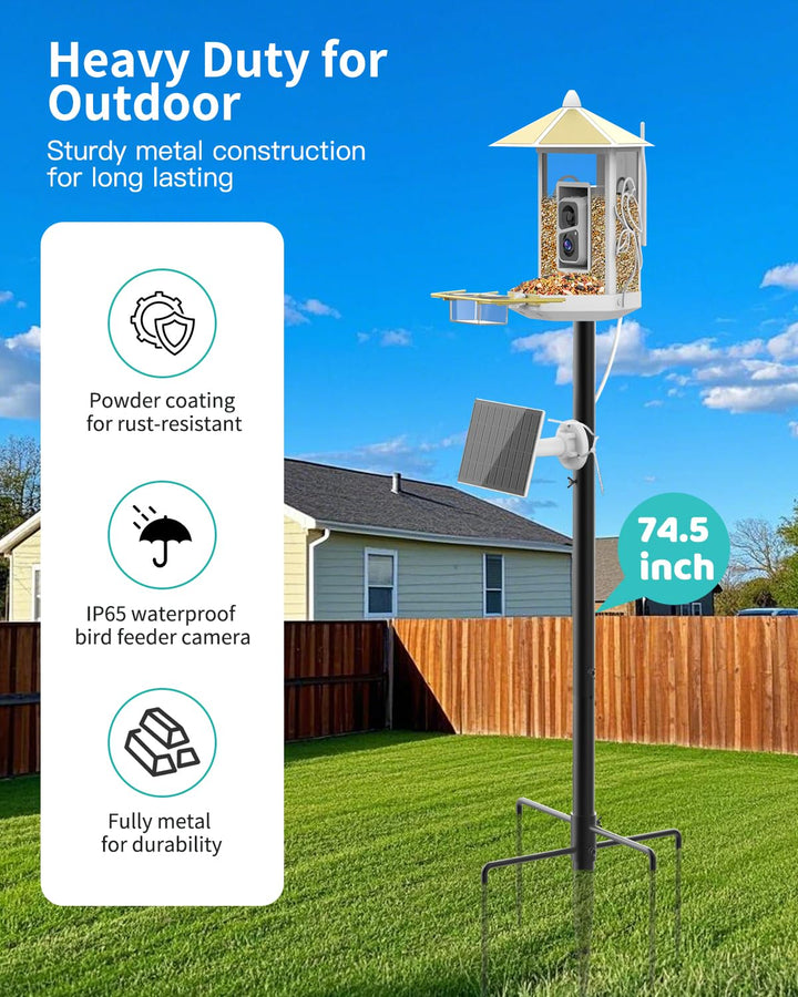 - 【All-in-one Bird Feeding Station】Our complete set includes a smart bird feeder and a 74.5-inch dedicated pole, offering easy, one-stop installation. Save 30% of your time on shopping and setup —no extra parts or complicated assembly needed! Perfect for those who value efficiency and want to avoid unnecessary hassle. The practical design fits perfectly in gardens, lawns, or backyards, enhancing your outdoor space with both functionality and style.